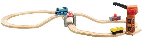 Race over, under, and through the bridge. Thomas dashes while Sodor Crane fills cart with shipping cargo. Introduce a young engineer to Thomas and Friends, or add to a Thomas fan's collection with this 25-piece wooden train set. Little conductors will have loads of fun with this high-quality figure-eight railroad set from Thomas & Friends. Made of wood, the track features an elevated bridge in the center and a crane where Thomas can refill his Sodor Shipping company cargo car. Thomas is very busy on the Island of Sodor, He chugs over the bridge and through the tunnel to the crane, Thomas collects the shipping cargo from the crane to deliver to the other engines, making sure everyone can go full steam ahead. You can't not put a value on the enjoyment that can bring to the little engineer that runs the rails all day. Don't miss out! This is a retired set and when they are gone you wont find any more! Thomas Wooden Railway vehicles, track and destinations are not compatible with Take Along Thomas items.