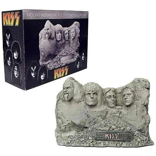 Celebrate one of the most iconic rock and roll bands ever, KISS, with the Mount KISSmore Statue! Modeled after the world famous Mount Rushmore, the hand crafted statue features The Demon, The Starchild, The Spaceman and The Catman as monolithic statues. The statue can be displayed free standing or mounted to a wall. Rock and roll all nite and party every day with the Mount Kissmore Statue!